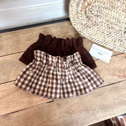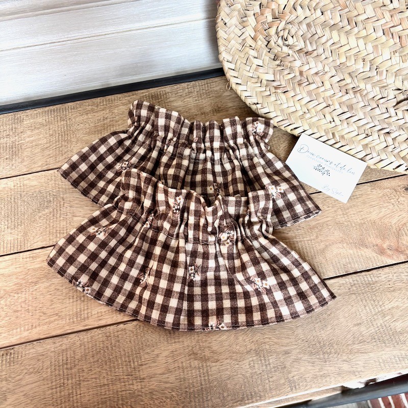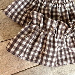 Magnifique seersucker motifs vichy et fleurs marron