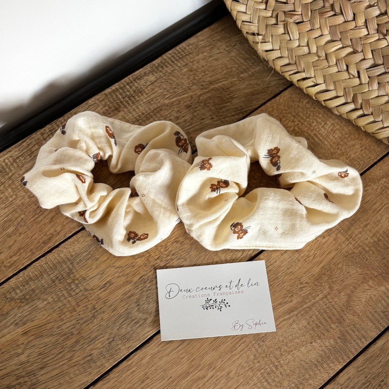 Joli chouchou en double gaze aussi joli dans les cheveux qu'au poignet !
