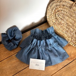 Joli chouchou en jean aussi joli dans les cheveux qu'au poignet !
