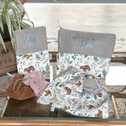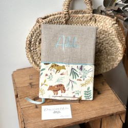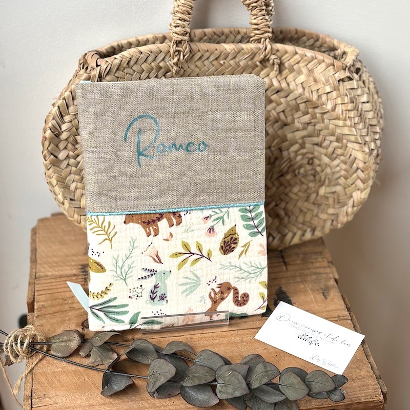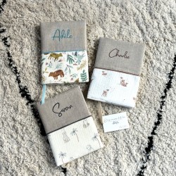 Protège carnet de santé personnalisable en lin et double gaze, carnet de santé personnalisé mixte, cadeau de naissance personnalisé, cadeau de naissance mixte, cadeau bébé