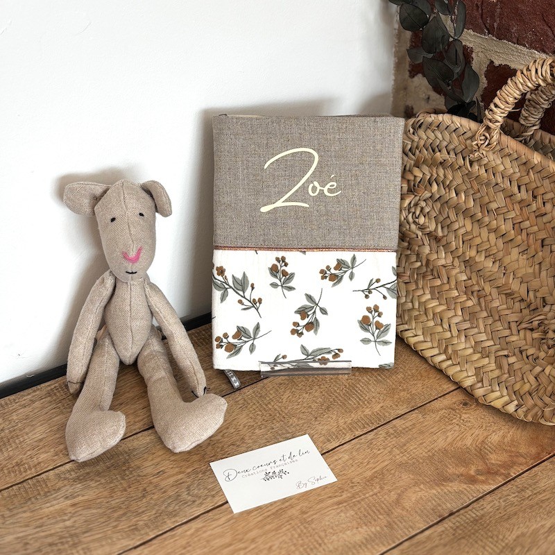 Protège carnet de santé personnalisable en lin et double gaze, carnet de santé personnalisé mixte, cadeau de naissance personnalisé, cadeau de naissance mixte, cadeau bébé
