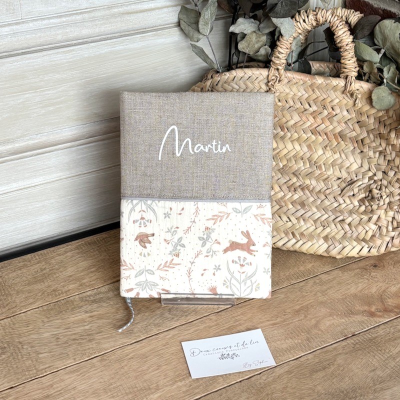 Protège carnet de santé en lin et Double gaze