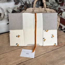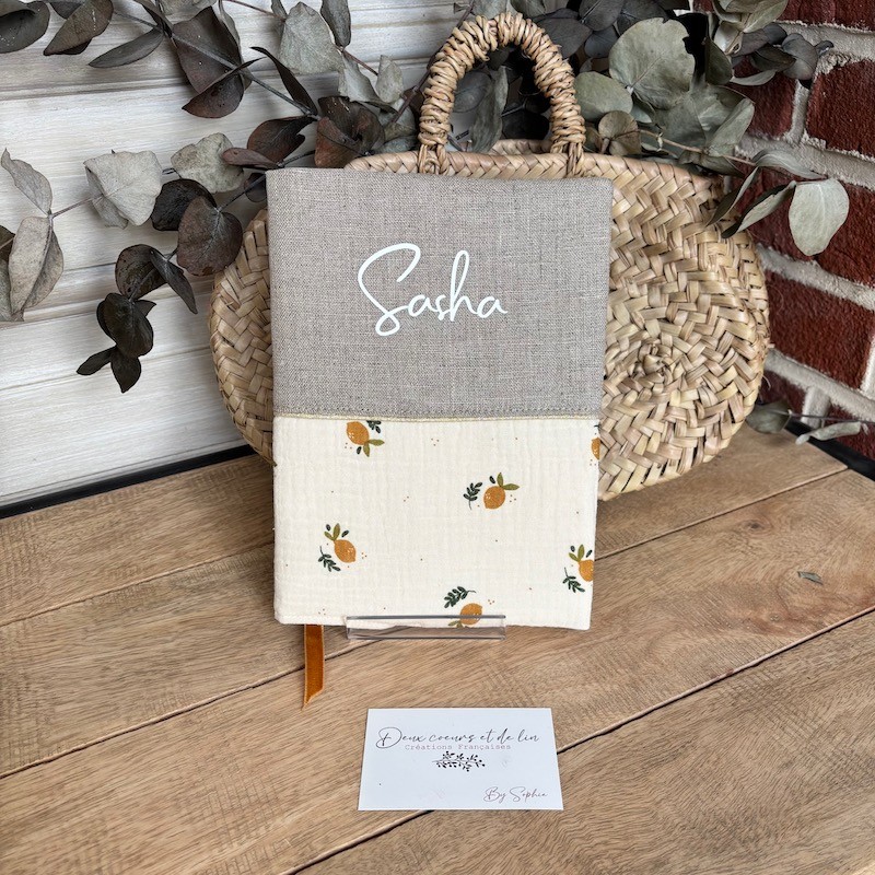 Protège carnet de santé personnalisable en lin et double gaze, carnet de santé personnalisé mixte, cadeau de naissance personnalisé, cadeau de naissance mixte, cadeau bébé