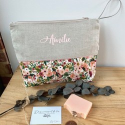 Trousse de toilette personnalisable lin Garden Party, trousse de toilette personnalisée, cadeau Fête des Mères, cadeau Fête des grands-mères personnalisé, cadeau de Saint valentin